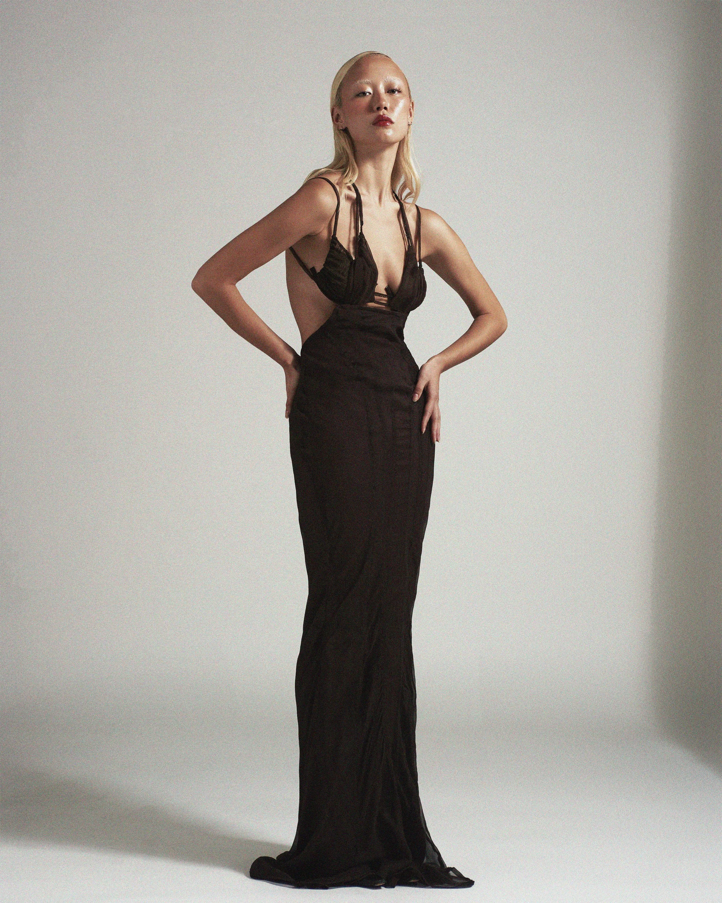 Continuing a re-contextualisation of intimate-wear materials and techniques for more delicate codes of dress. A palette of lace, silks, twills and textures are layered to paint a weathered state of balance. To Marry the vulnerabilities between form and fragility.